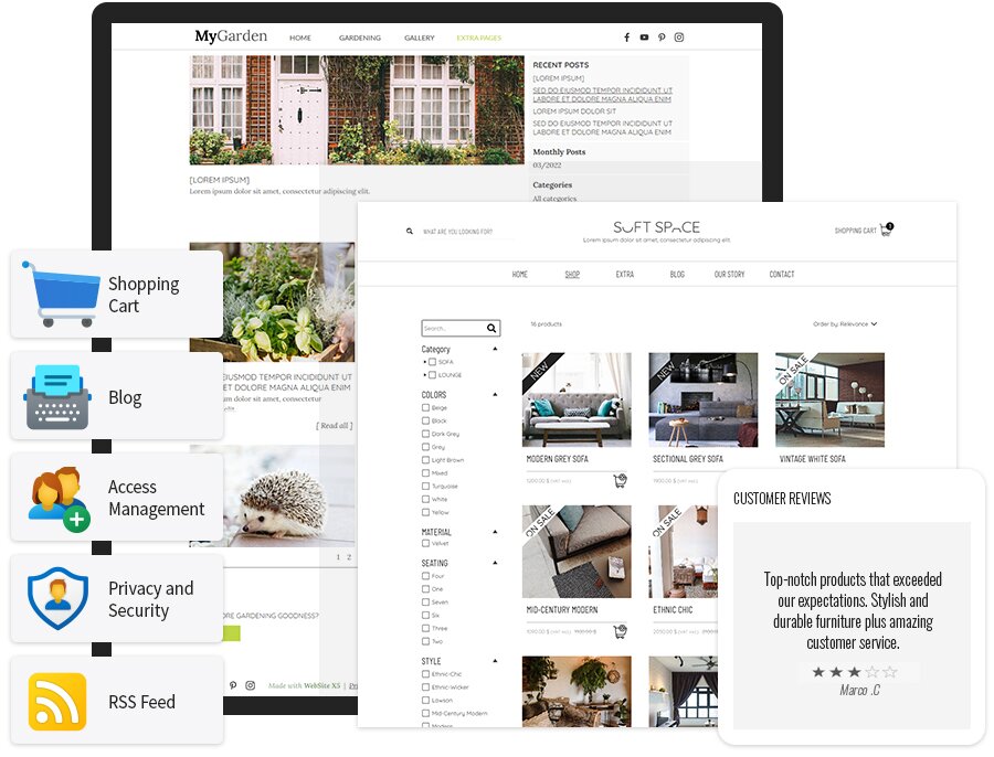 Ya sean tipo escaparate, portfolio online, tienda electrónica, blog: cualquiera que sea su exigencia, con WebSite X5 tendrá siempre la herramienta apropiada para llevarla a cabo.
