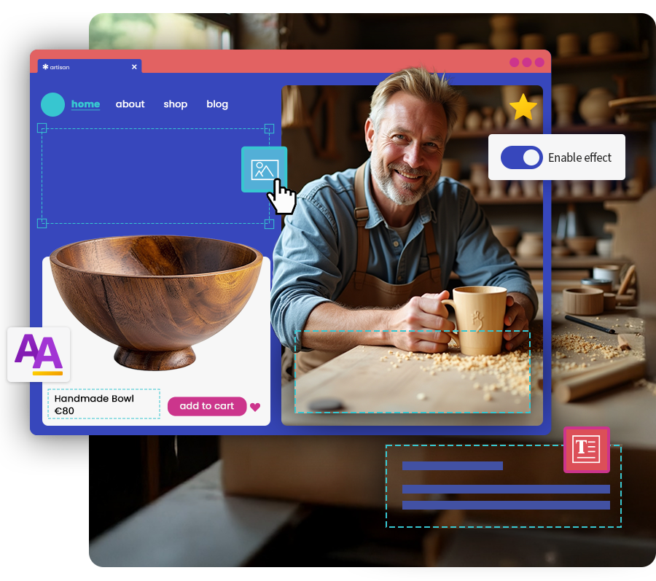 Oui. Le projet généré par l’AI est un excellent point de départ mais vous pouvez modifier chaque aspect avec l’éditeur visuel glisser-déposer. Vous avez la liberté de changer textes, images, couleurs, styles et structure des pages. Ainsi, vous obtenez un site riche en contenus, mais toujours unique et vraiment vôtre.