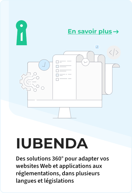 Iubenda est une solution à 360 degrés qui permet de rendre des websites et des applications conformes à la loi dans plusieurs langues et législations, avec des mises à jour à distance et automatiques gérées par une équipe juridique internationale. Il sert plus de 130 000 clients dans plus de 100 pays, des grandes entreprises aux nouvelles startups. Les services comprennent un générateur de politique de confidentialité et de cookies avec plus de 1 600 clauses et solutions pour les cookies, la confidentialité interne et la gestion du consentement.