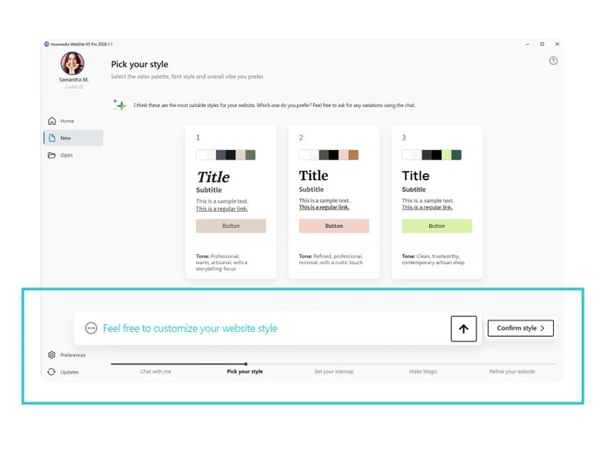 La conversazione non si interrompe più quando si arriva alla scelta dello stile: puoi chiedere nuove proposte, affinare quelle suggerite o combinare elementi diversi come, per esempio, la palette di uno stile con i font di un altro.