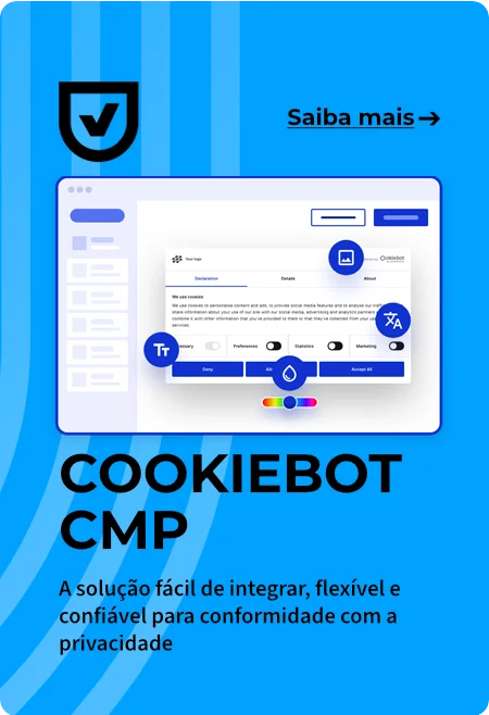 O Cookiebot oferece uma solução fácil e automática para deixar seu website compatível com as principais leis de cookies e privacidade de dados (GDPR, CCPA/CPRA, DMA, LGPD, POPIA).