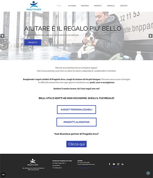 Marta conhecia a Incomedia, que já havia apoiado o Progetto Arca no passado. Ao descobrir o WebSite X5, ela percebeu imediatamente como ele era simples e imediato. No início, a falta de experiência a preocupou, mas depois descobriu que tudo estava ao seu alcance. Bastaram algumas semanas para que ela publicasse o site on-line com ofertas de presentes solidários.